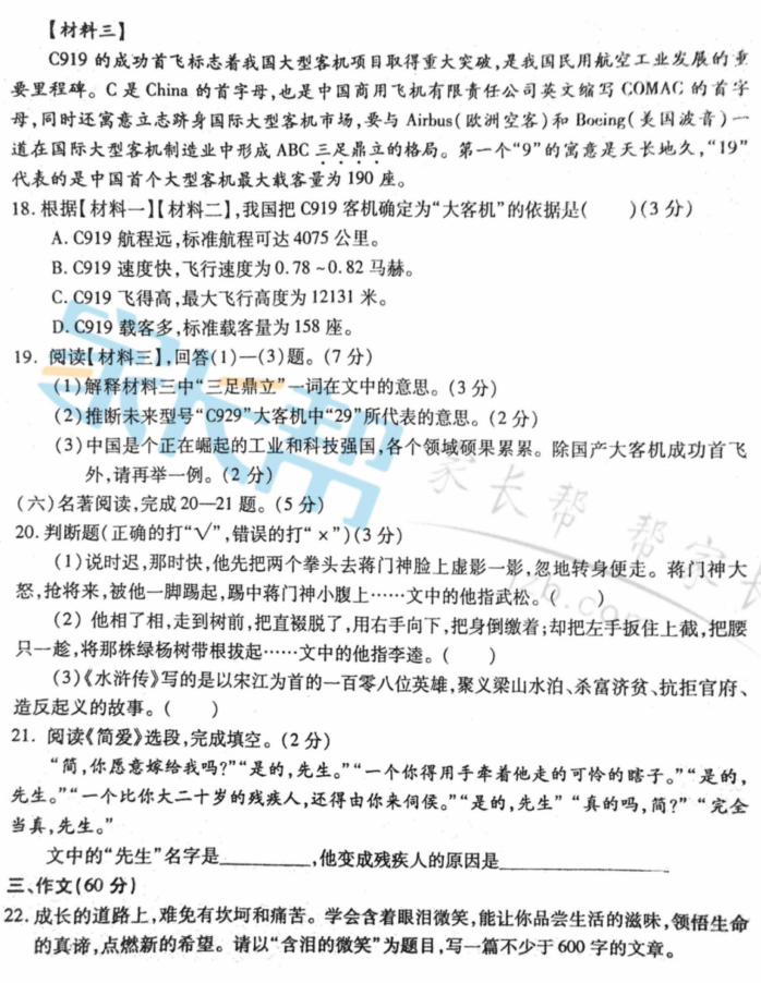 福州市2017-2018学年九年级第一学期期末质检语文试题及答案(6)