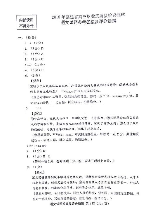 2018年福建省高三质量检查语文试题答案(11)