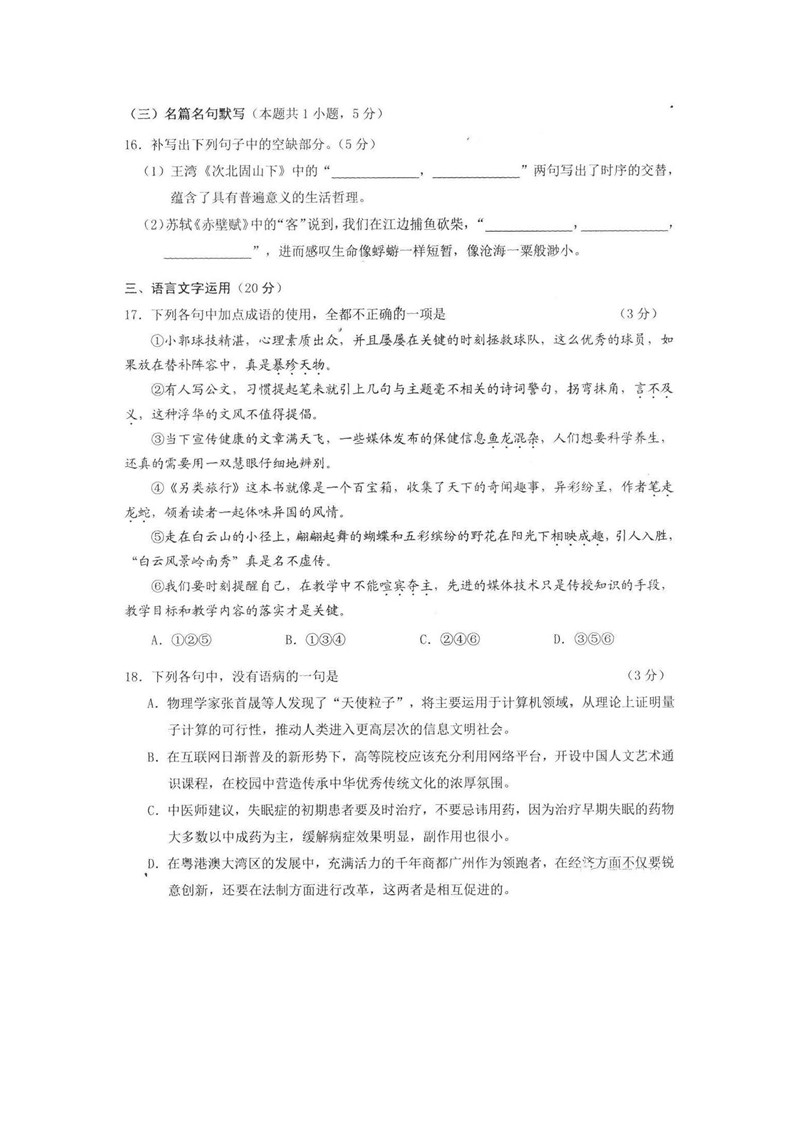 2018年广州一模语文试题及答案(9)