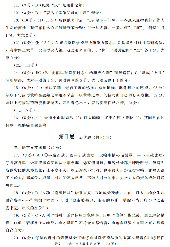 2018成都二诊语文试题答案 成都2015级高三二诊语文(2)
