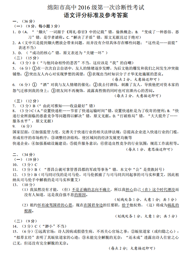 阳光学习网 来源: 绵阳一诊语文 2018-11-20 本文受益:人 大 中 小