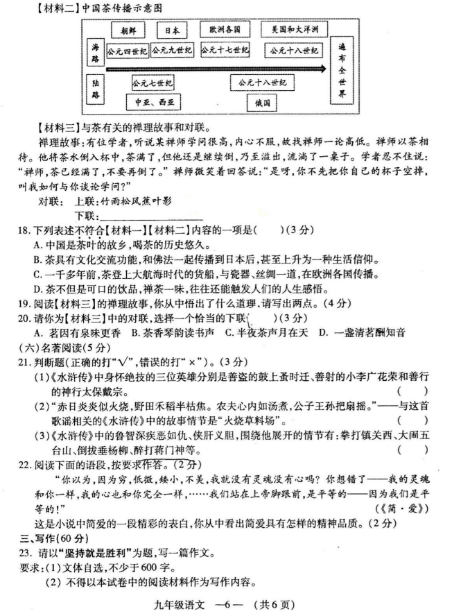福州市2018-2019学年第一学期九年级期末质量检测语文试题答案(6)