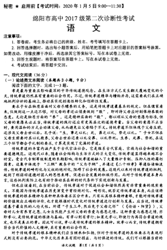 阳光学习网 来源: 绵阳二诊语文 2020-01-12 本文受益:人 大 中 小