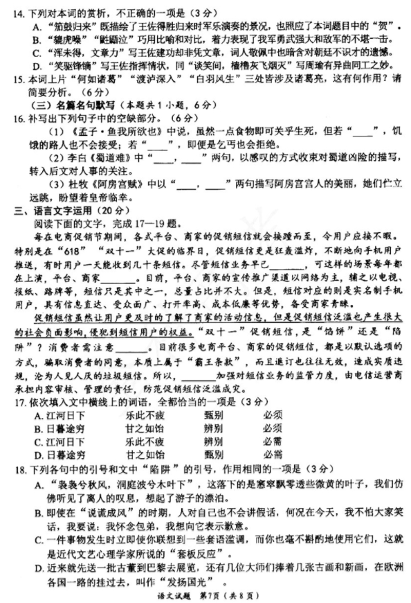 阳光学习网 来源: 绵阳二诊语文 2020-01-12 本文受益:人 大 中 小