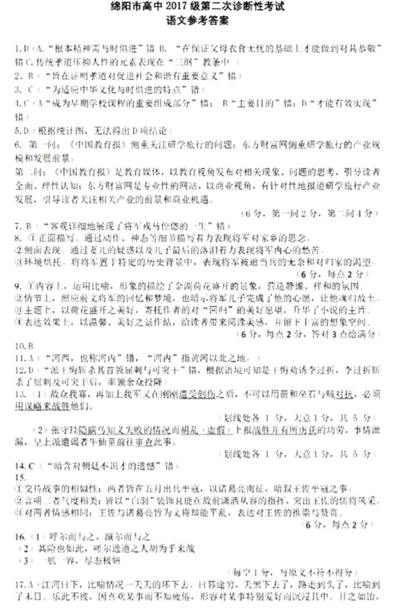 阳光学习网 来源: 绵阳二诊语文 2020-01-12 本文受益:人 大 中 小