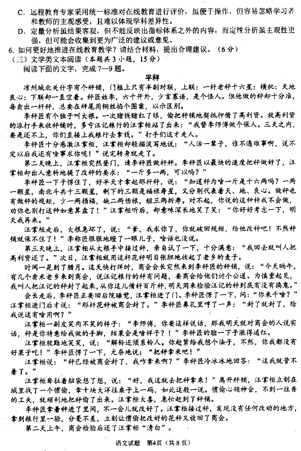 2020年绵阳三诊语文试题及答案(4)