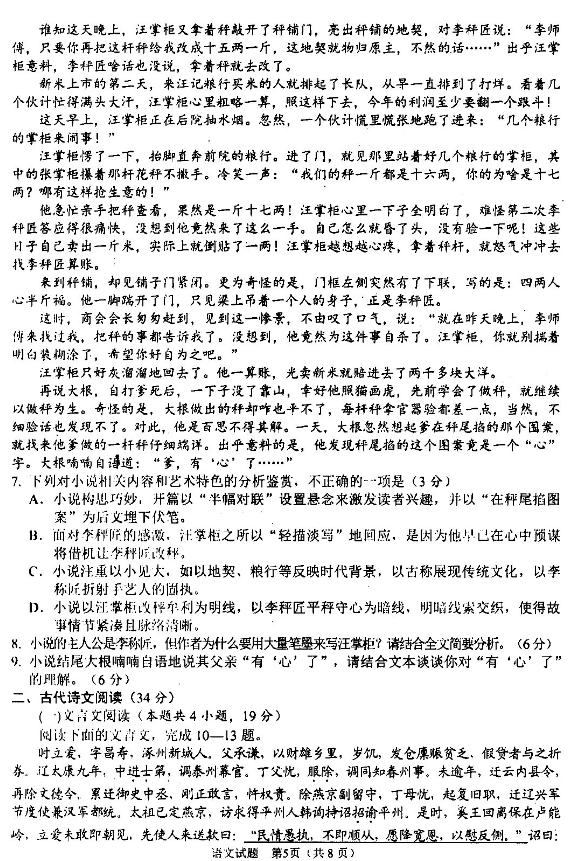 2020年绵阳三诊语文试题及答案(5)