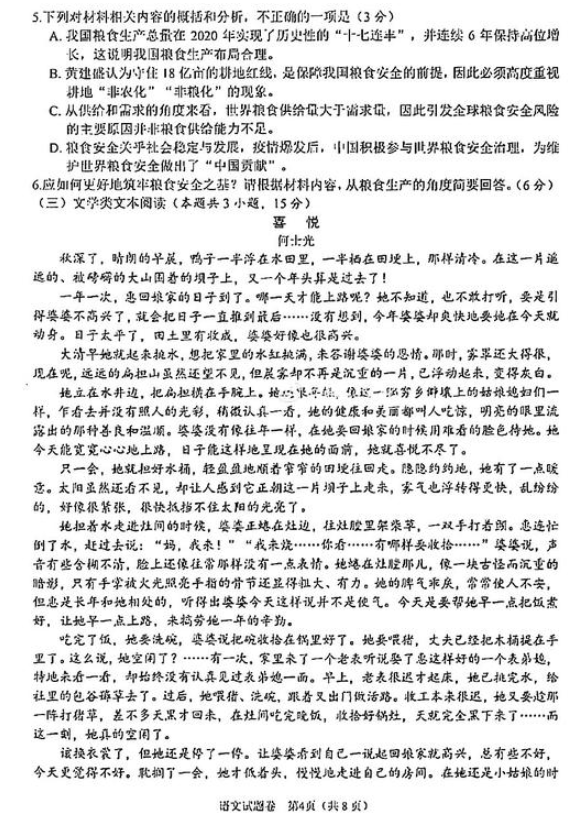 2021年绵阳三诊语文试题及答案(4)