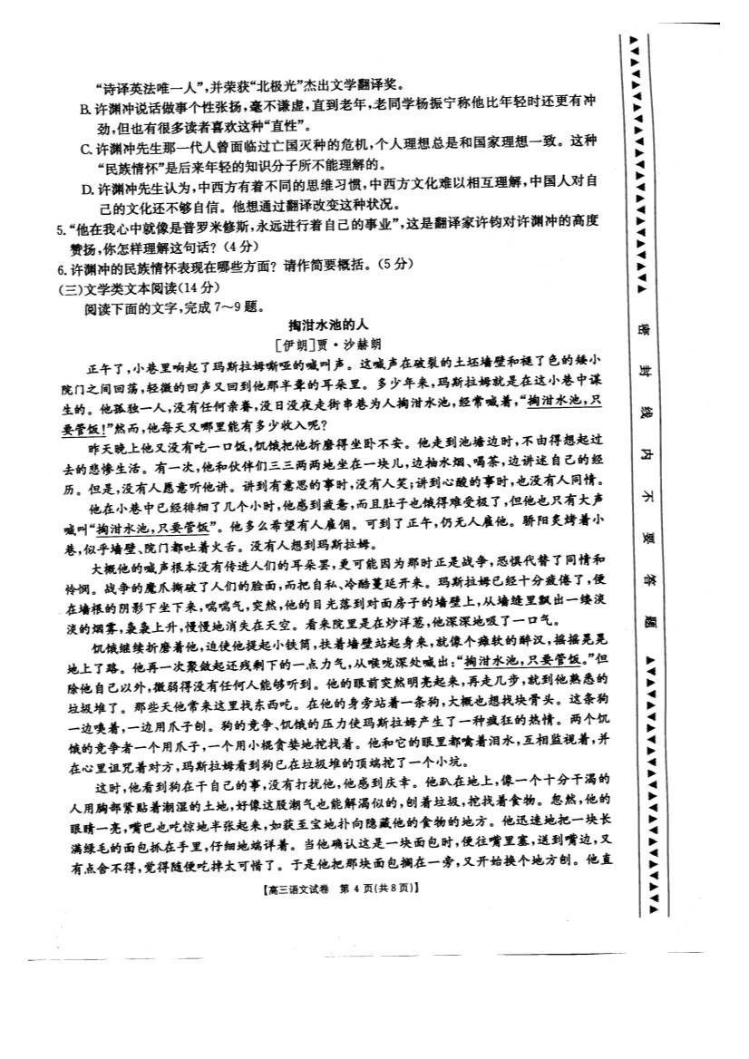 山西临汾忻州五校2017届高三第三次五校联考语文试题及答案(4)