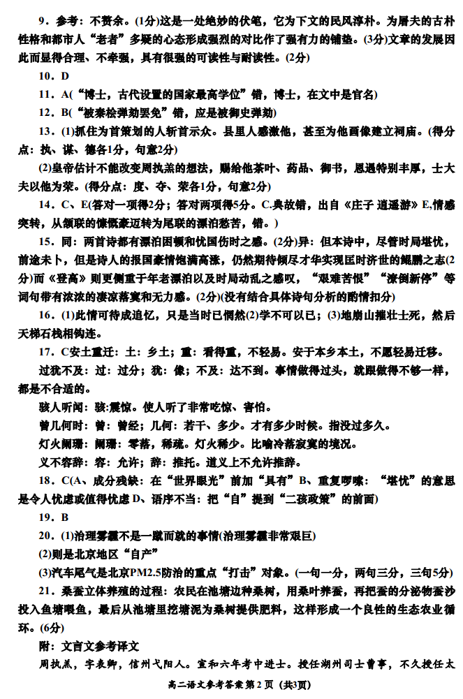 彭州市2016—2017学年上期期末学业测试高二语文试题答案(2)