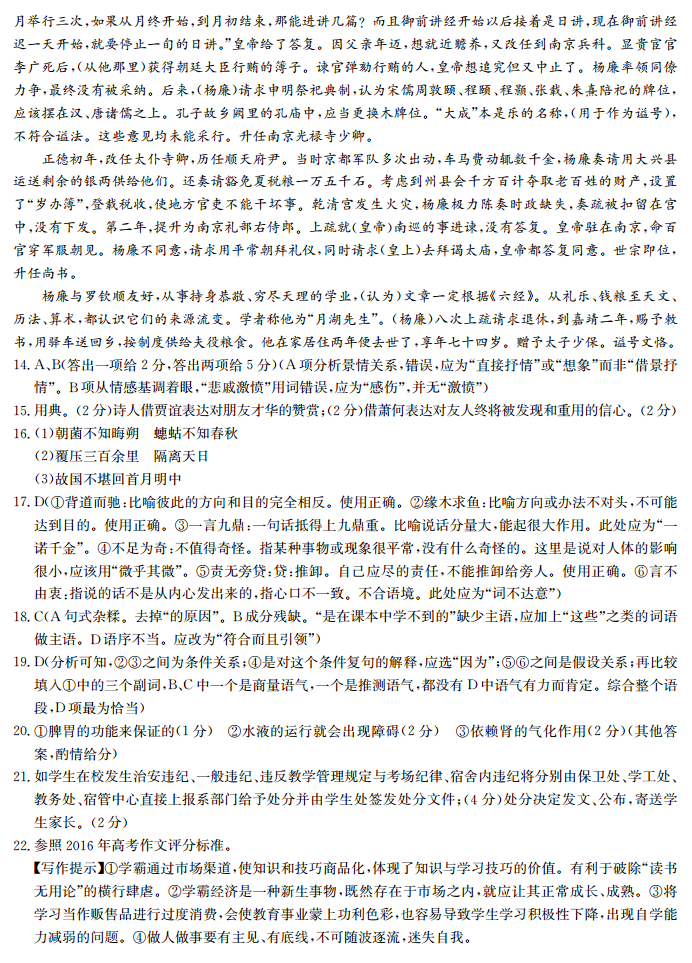 巢湖市2016-2017学年第一学期期末考高二语文试题答案(2)