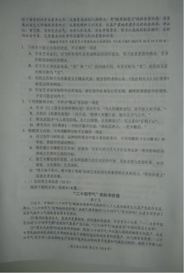 豫南九校2016-2017学年上期期末质量考评高三语文试题及答案(2)