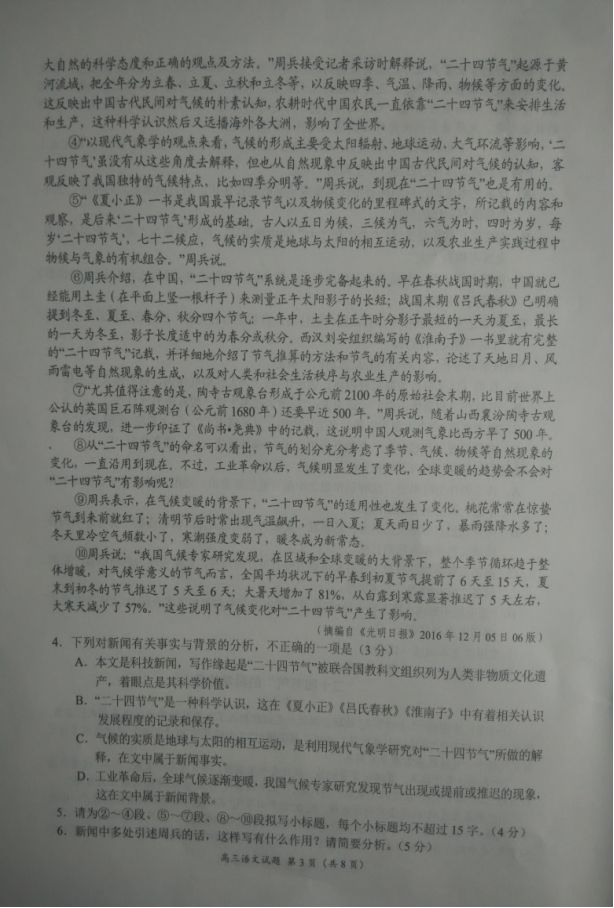豫南九校2016-2017学年上期期末质量考评高三语文试题及答案(3)