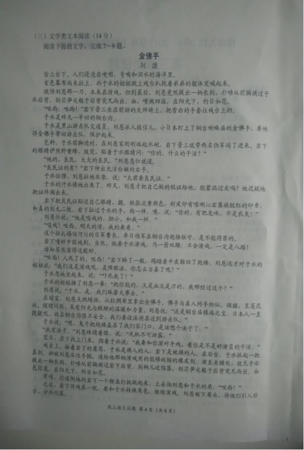 豫南九校2016-2017学年上期期末质量考评高三语文试题及答案(4)