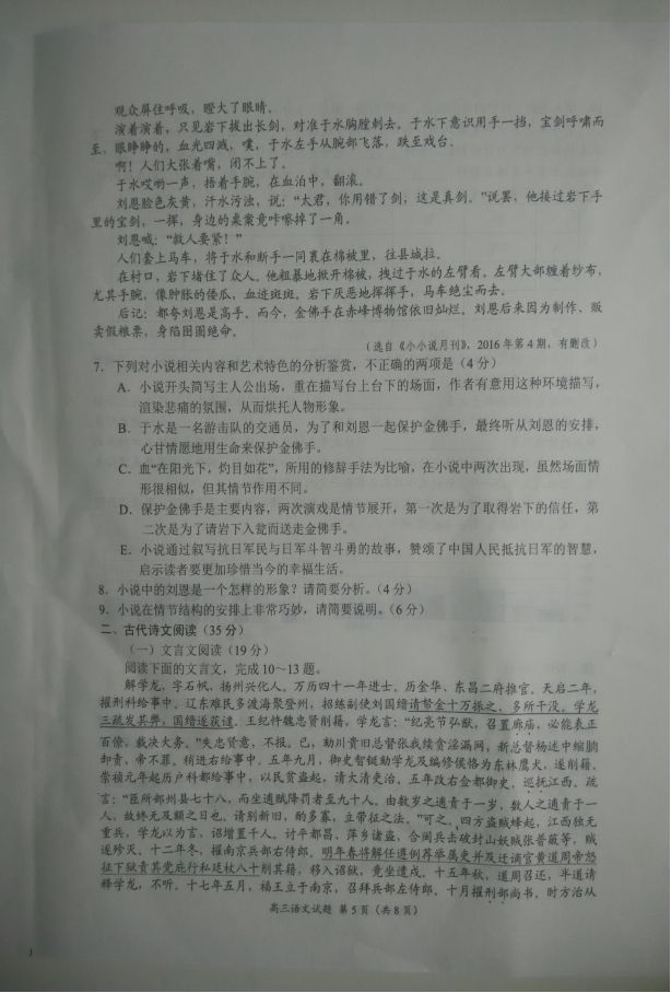 豫南九校2016-2017学年上期期末质量考评高三语文试题及答案(5)