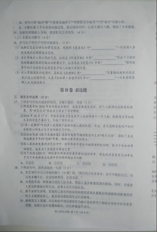 豫南九校2016-2017学年上期期末质量考评高三语文试题及答案(7)