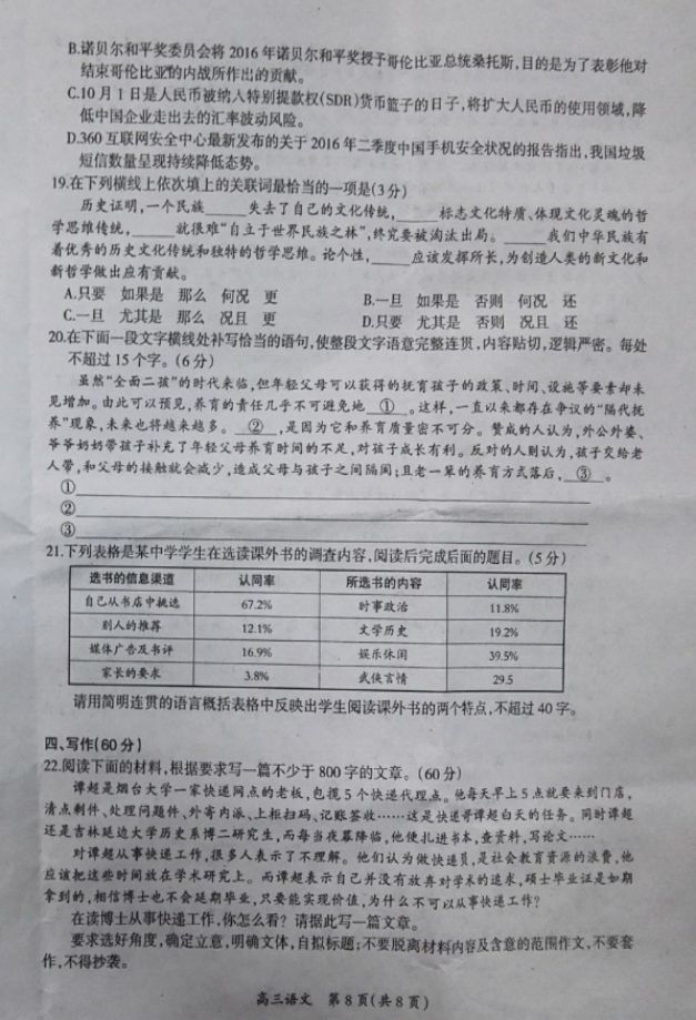 江西吉安高三上学期期末教学质量检测语文试题及答案(8)