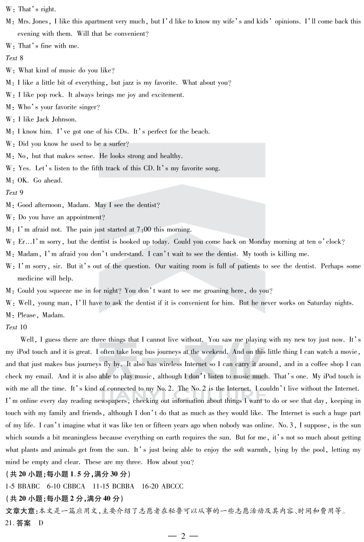 2017皖北协作区联考英语答案 安徽皖北第19届高三联考英语答案(2)