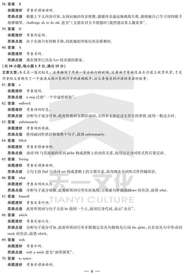 2017皖北协作区联考英语答案 安徽皖北第19届高三联考英语答案(6)