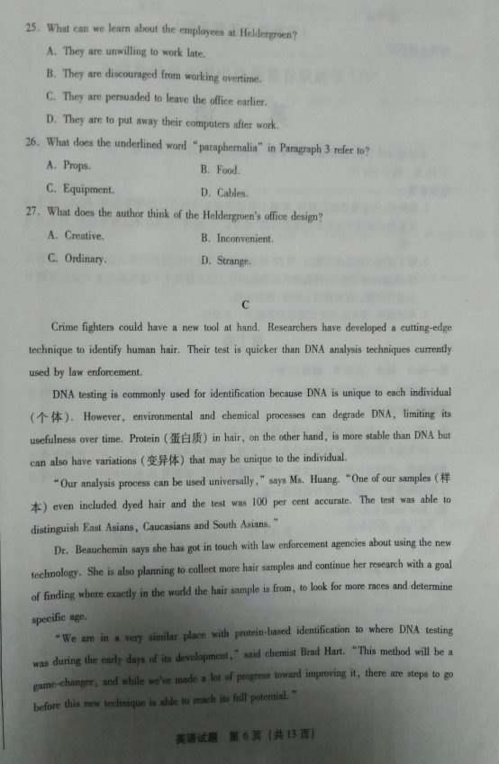 2017年福建省高中毕业班质量检查英语试题及答案(6)