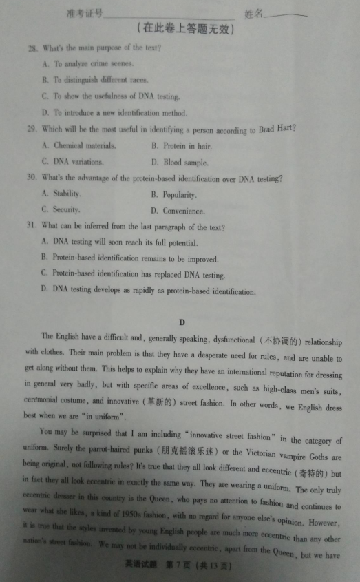 2017年福建省高中毕业班质量检查英语试题及答案(7)
