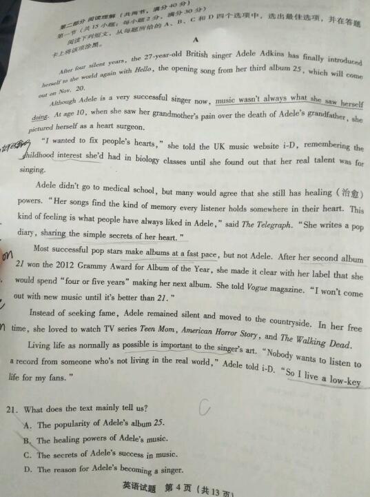2017年4月福建省高三质量检查英语试题答案(4)