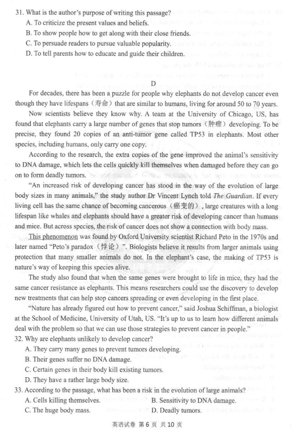 2017年哈三中二模英语试题及答案(6)