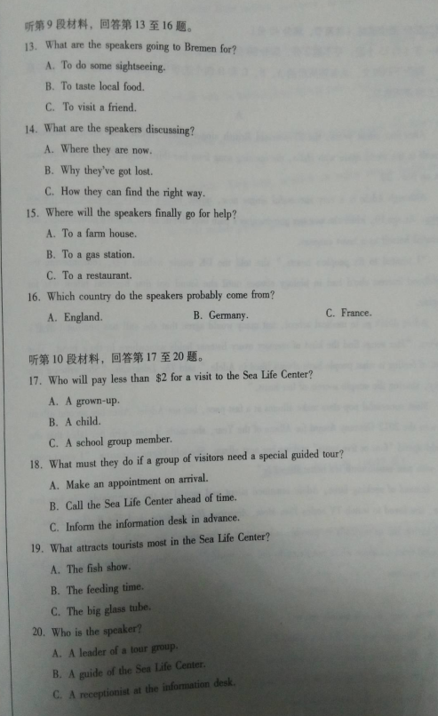 2017年福建普通高中毕业班质量检查英语试题及答案(3)