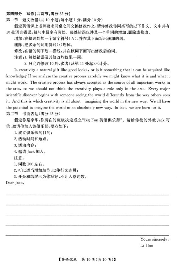 河北衡水中学2017届高三下学期期中考英语试题及答案(10)
