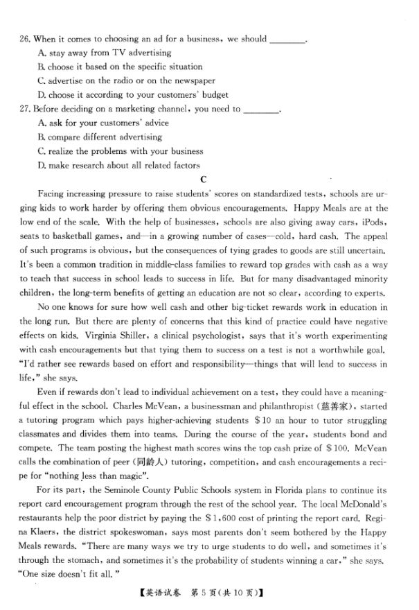 河北衡水中学2017届高三下学期期中考英语试题及答案(5)