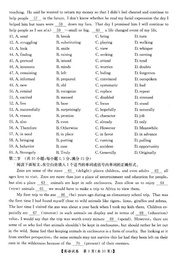 河北衡水中学2017届高三下学期期中考英语试题及答案(9)