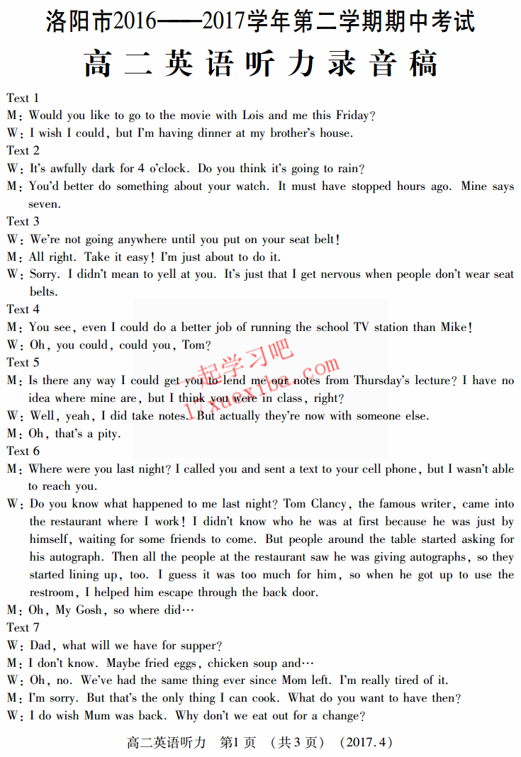 洛阳市2016-2017学年高二期中考英语试题及答案(2)