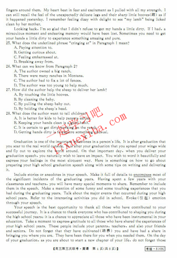 皖南八校2017届高三第三次联考英语试题答案(4)