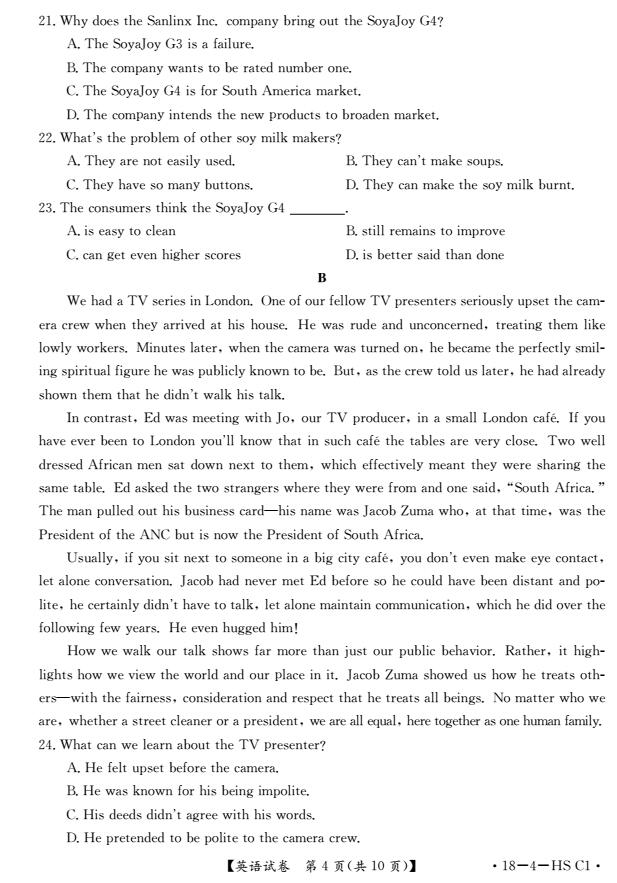 2017衡水中学高三三模英语试题及答案(4)