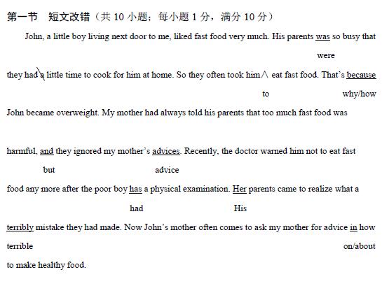 第一节 短文改错(共10小题;每小题1分,满分10分)