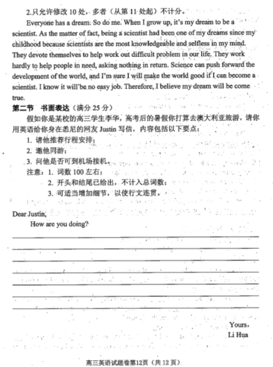 2020年绵阳三诊英语试题及答案(12)