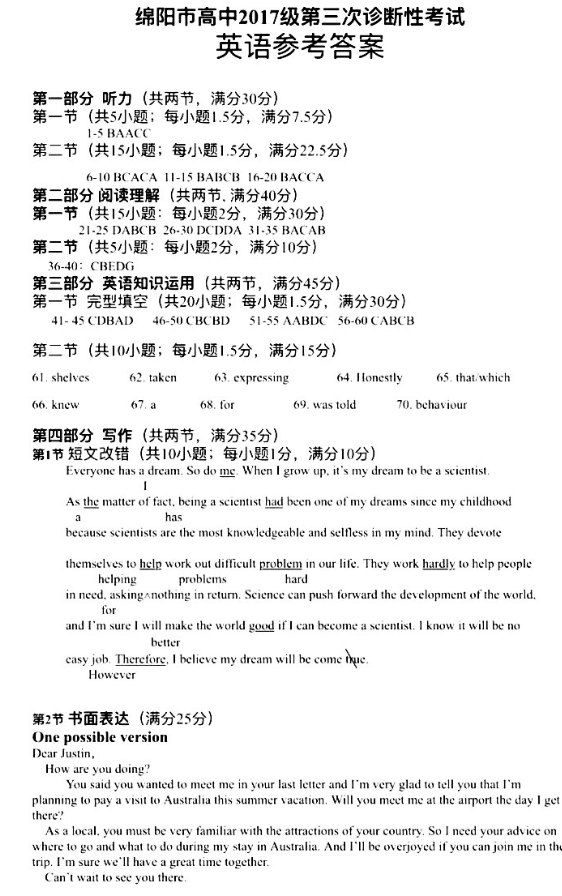 2020年绵阳三诊英语试题及答案(13)