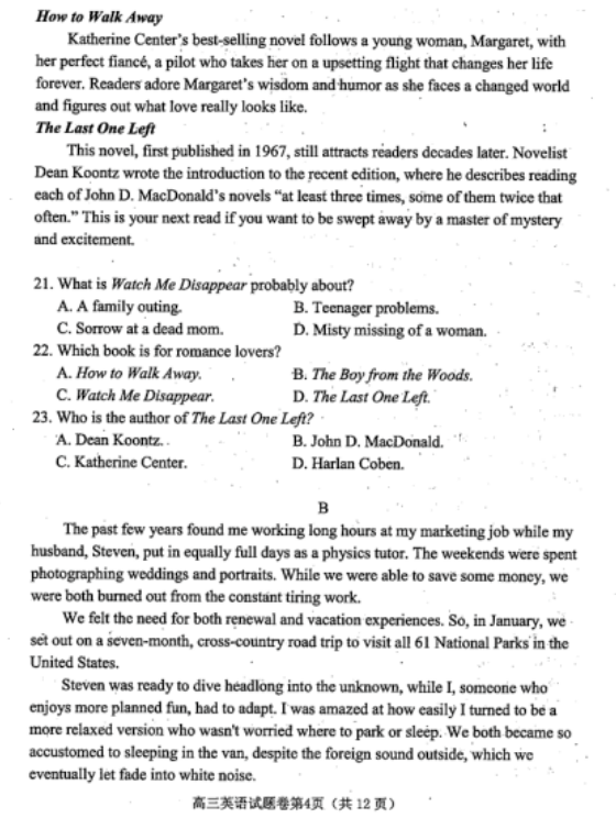 2020年绵阳三诊英语试题及答案(4)