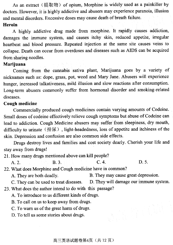 2021年绵阳二诊英语试题及答案(4)