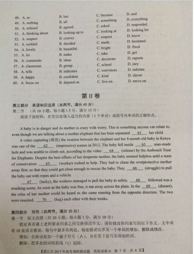广东湛江2017届高三上学期期中高考调研测试英语试题及答案(7)