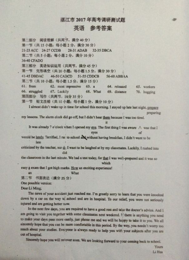 广东湛江2017届高三上学期期中高考调研测试英语试题及答案(9)