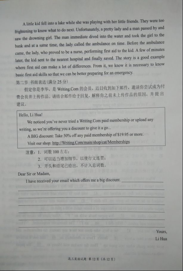 豫南九校2016-2017学年上期期末质量考评高三英语试题及答案(12)