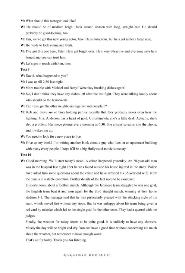 豫南九校2016-2017学年上期期末质量考评高三英语试题及答案(20)