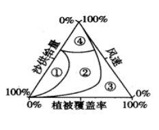 河西走廊是中国沙漠化最严重的地区之一。目前河西走廊北部的沙漠加速向南入侵,绿洲沙漠化日趋严重。下图为河西走廊各种沙丘形成因子分析图,据此完成6~7题。
