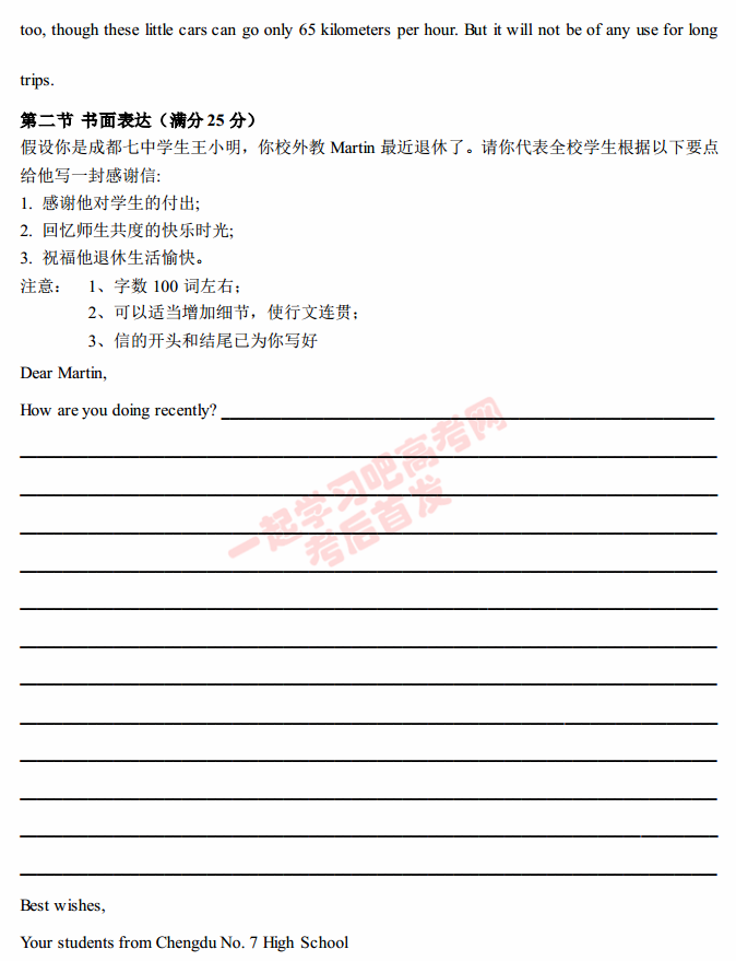 四川成都七中2017届高三二诊英语试题及答案(11)