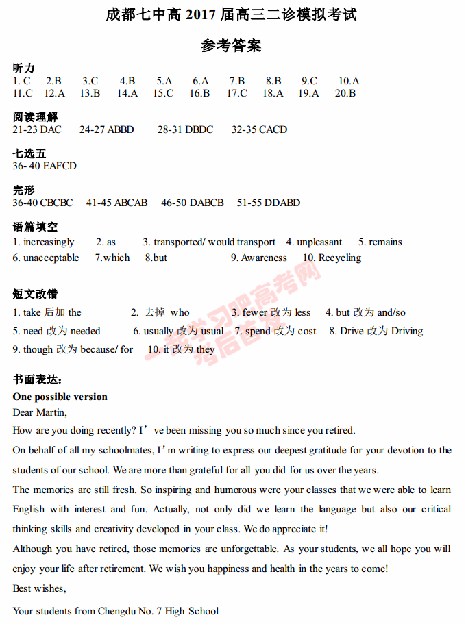 四川成都七中2017届高三二诊英语试题及答案(12)