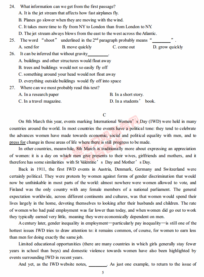 四川成都七中2017届高三二诊英语试题及答案(5)