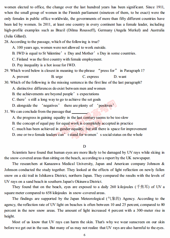 四川成都七中2017届高三二诊英语试题及答案(6)