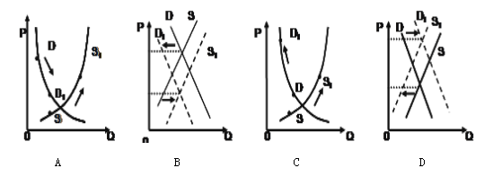 (图中P表示价格,Q表示数量,D表示需求曲线,S表示供给曲线,D1、S1表示变化后的状况)