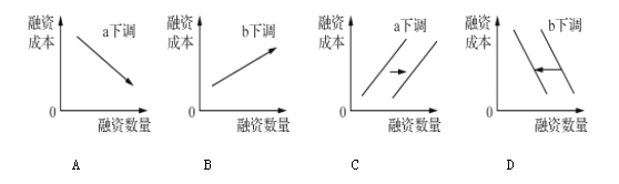 25.2015年10月24日,中国人民银行下调金融机构一年期贷款基准利率(a)0.25个百分点,下调金融机构人民币存款准备金率(b)0.5个百分点。在其他条件不变的情况下,下图中,正确反映了政策出台后对企业融资的影响的是: